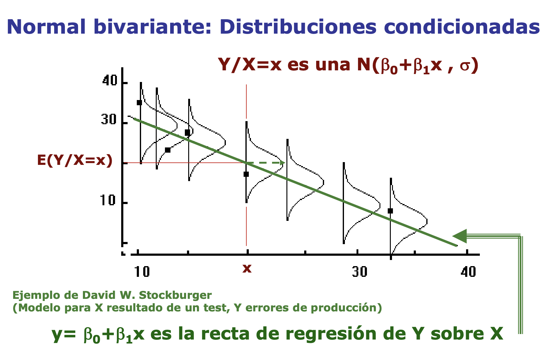 En resumen, si nuestros datos son aproximadamente bivariados, entonces la expectativa condicional, la mejor predicción de \(Y\) dado que conocemos el valor de \(X\) está dada por la línea de regresión.