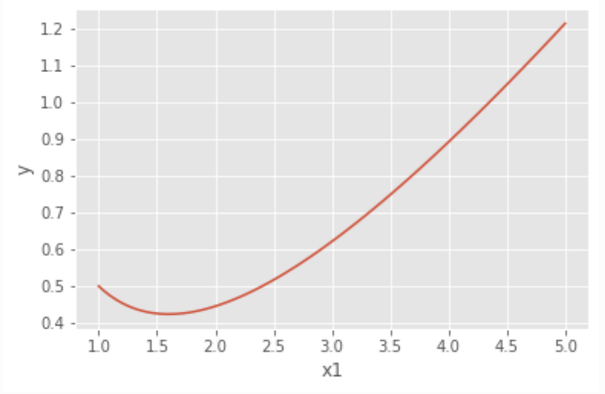 La siguiente ecuación muestra un modelo lineal en el que el predictor 𝑥1 no es lineal respecto a y: