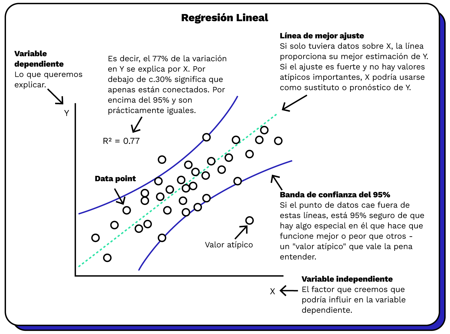 De aquí facilmente podemos intuir algunos de los supuestos que deben cumplirse al implementar una regresión (y que estudiaremos en detalle en la siguiente sesion):