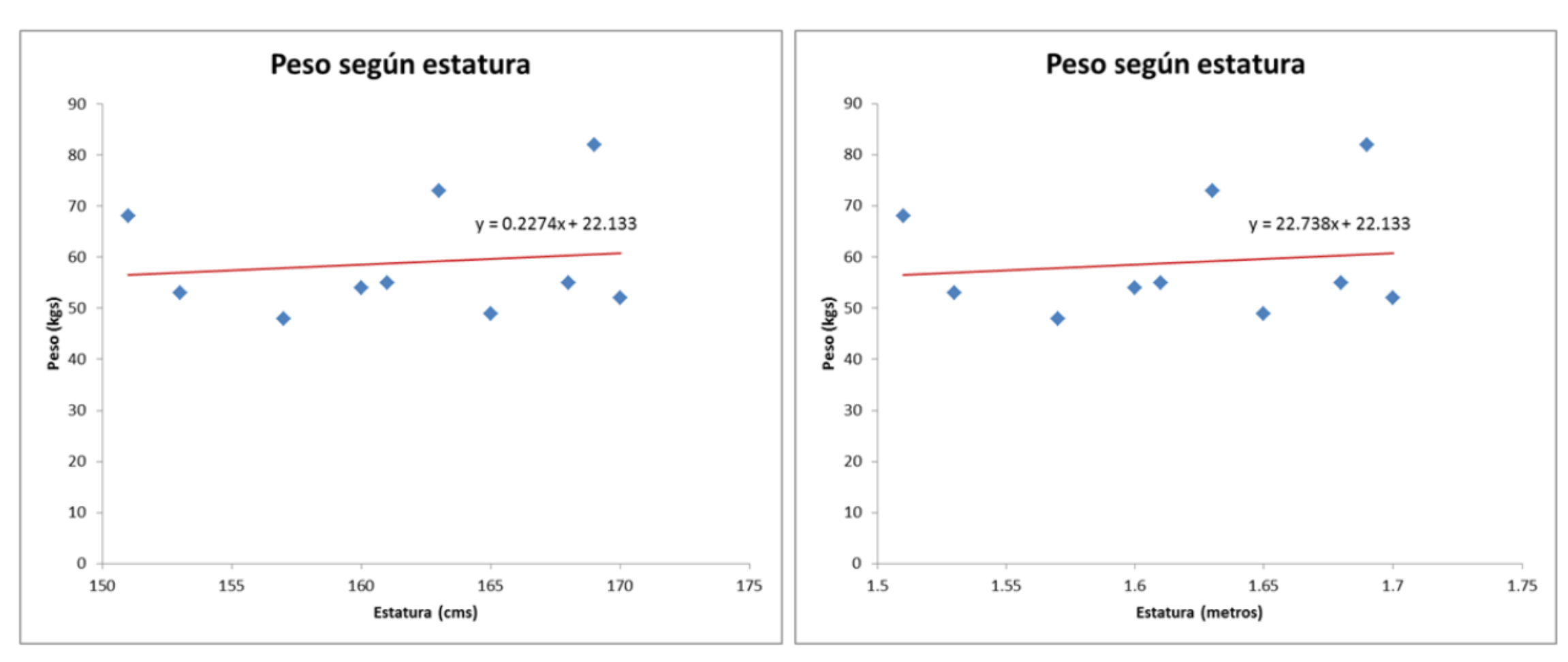 Por ejemplo, una persona podría querer relacionar los pesos de los individuos con sus alturas…