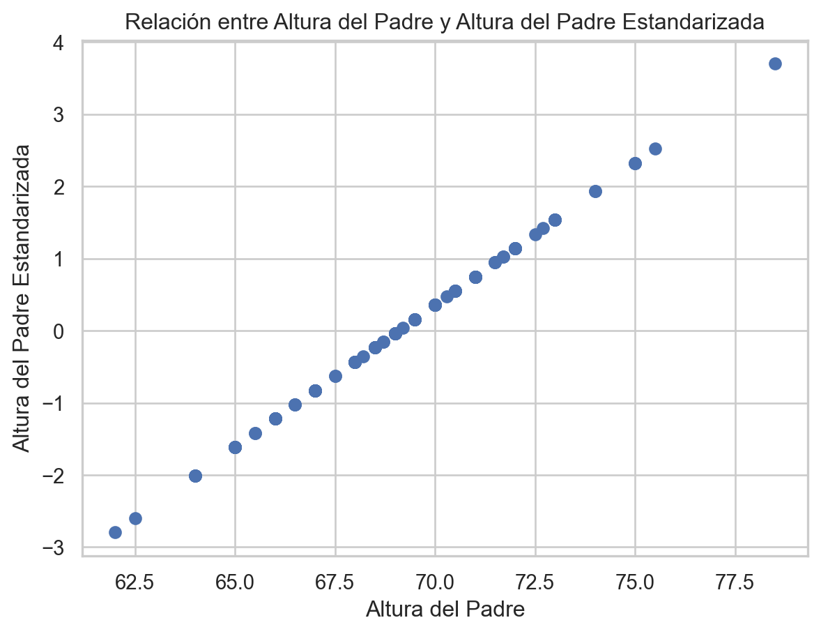 import numpy as np# Calcular la media de las alturas del padremu_x = galton_heights['father'].mean()# Calcular la media de las alturas del hijomu_y = galton_heights['son'].mean()# Calcular la desviación estándar de las alturas del padres_x = galton_heights['father'].std()# Calcular la desviación estándar de las alturas del hijos_y = galton_heights['son'].std()# Calcular el coeficiente de correlación entre las alturas del padre y el hijor = galton_heights['father'].corr(galton_heights['son'])print(r)print(s_x)print(s_y)print(mu_x)print(mu_y)