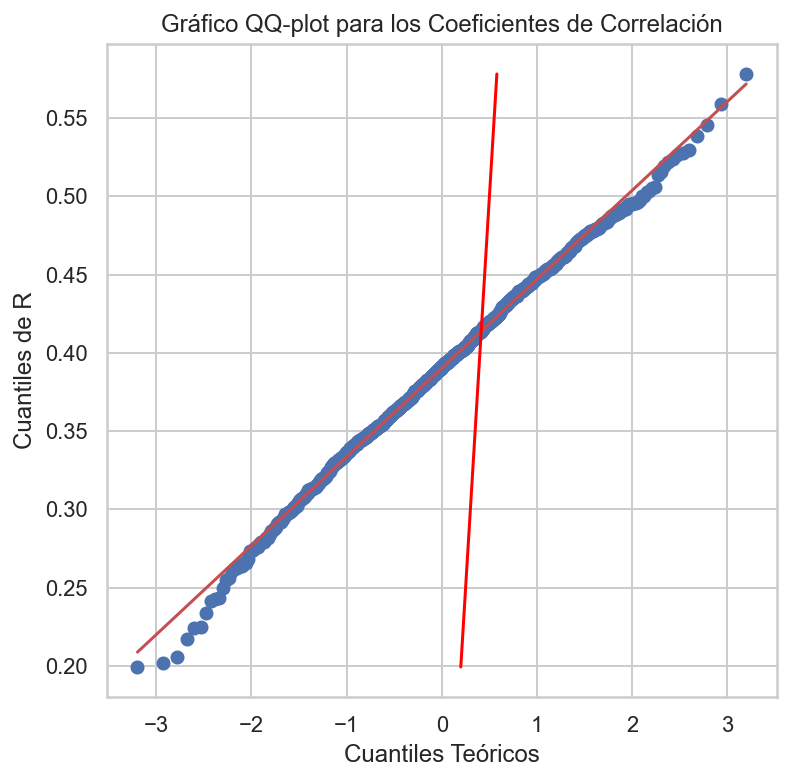 Aquí está el gráfico de observaciones simuladas para \(X\) y \(Y\) a lo largo de la correlación de la muestra:
