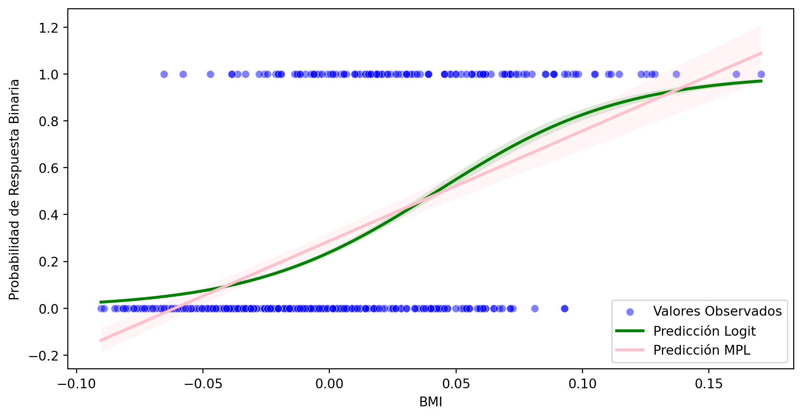 Para un cierto rango de valores, el modelo lineal y Logit pueden ser muy similares: