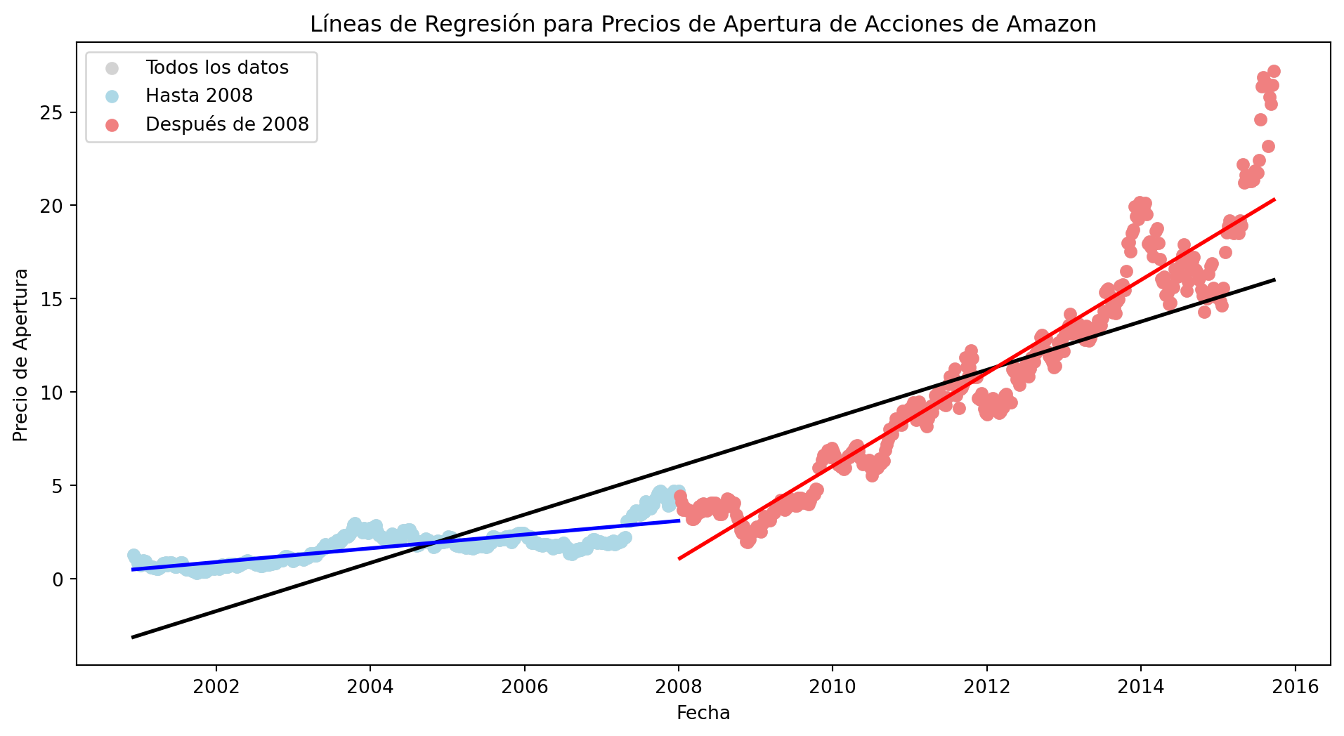 # Dividir los datos en tres conjuntos: antes de 2008, después de 2008 y todos los datos
